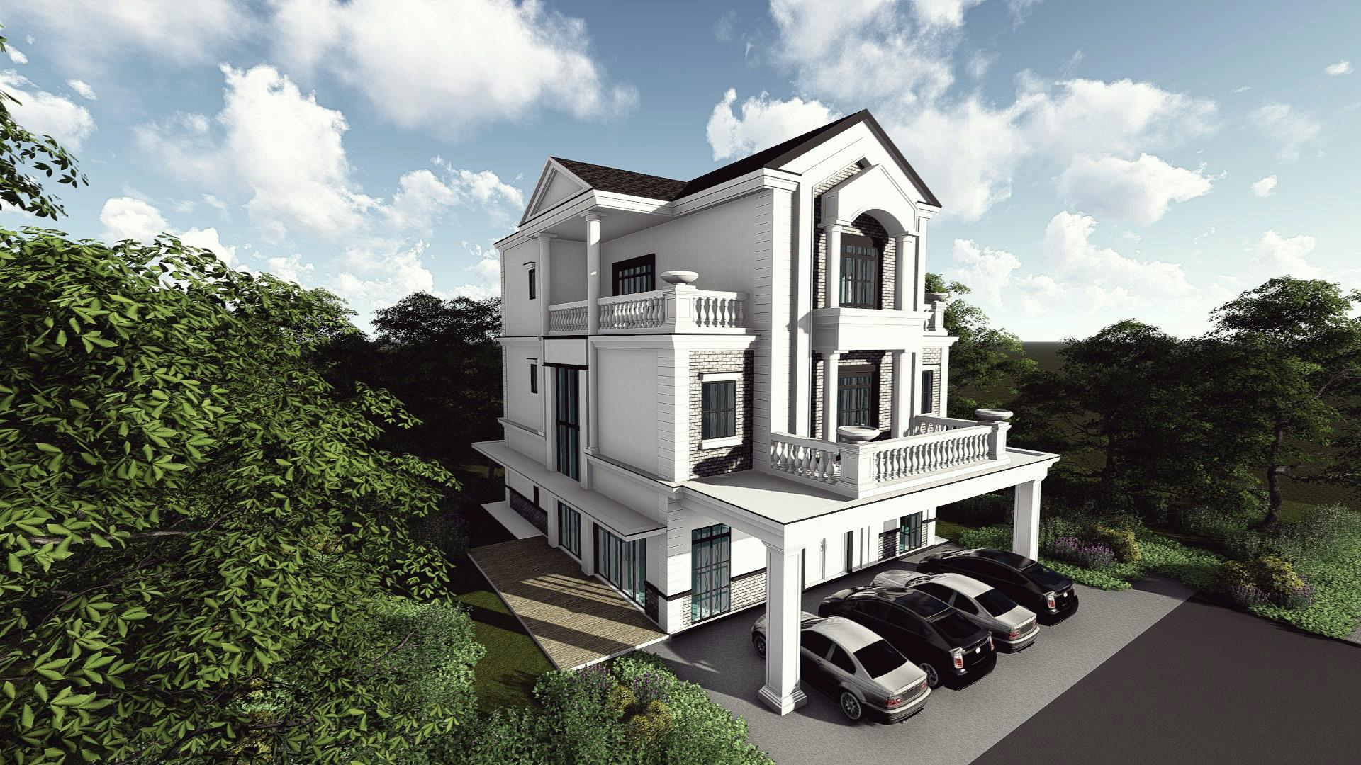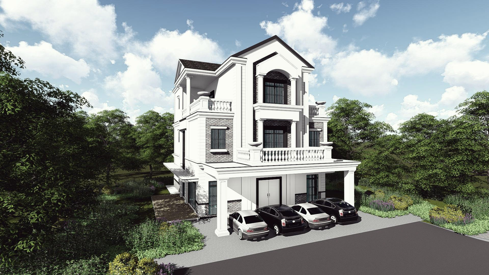 - Porch accommodates 4 cars