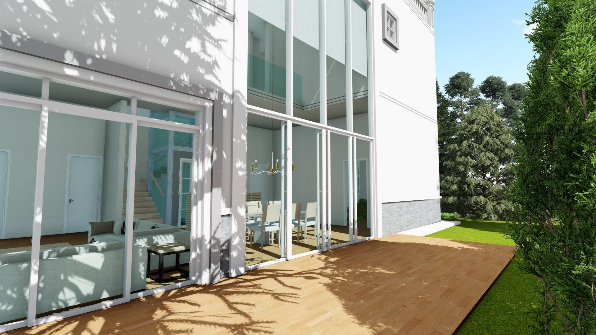 Semi-outdoor Lounge/ Verandah with swimming pool views